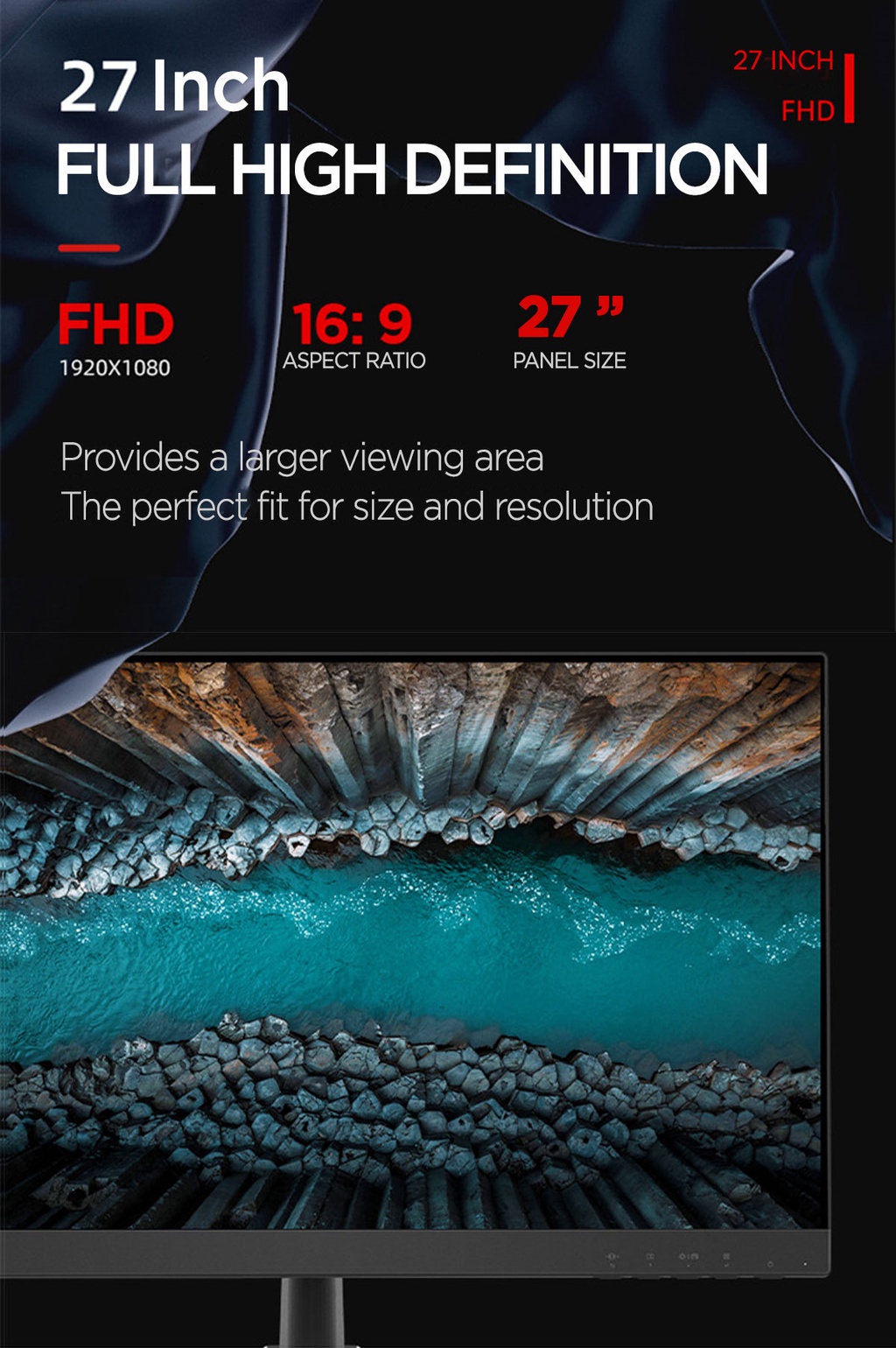 [最佳卖家]联想D27-30 27英寸FHD 1920x1080显示器(66B8KAC6MY)250尼特|72%NTSC 82 dpi |4ms响应率|HDMI VGA多输入|HDMI电缆含|3Y保修